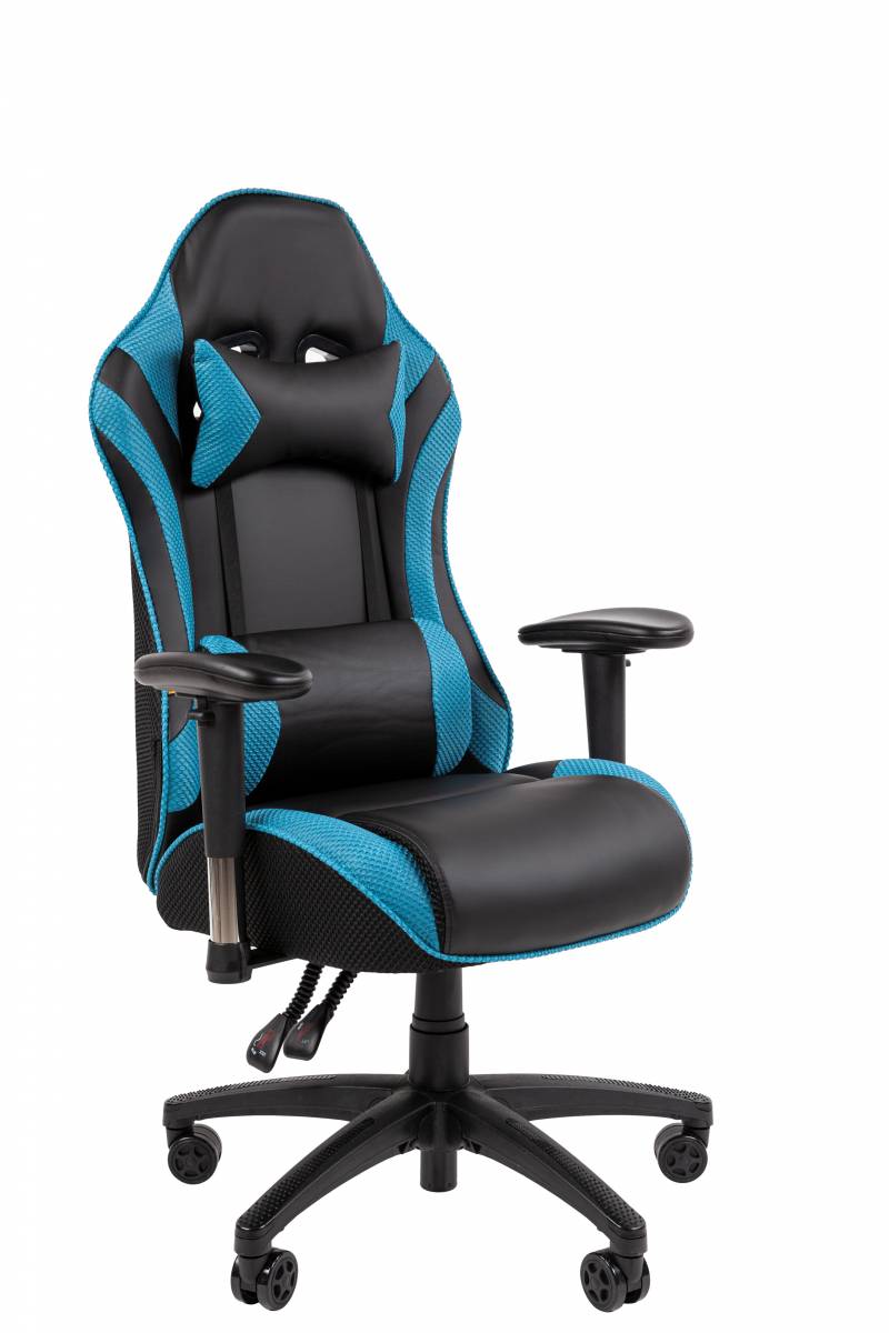 Кресло компьютерное "GT Master GM-110", две подушки, экокожа, черное/голубое, 531928